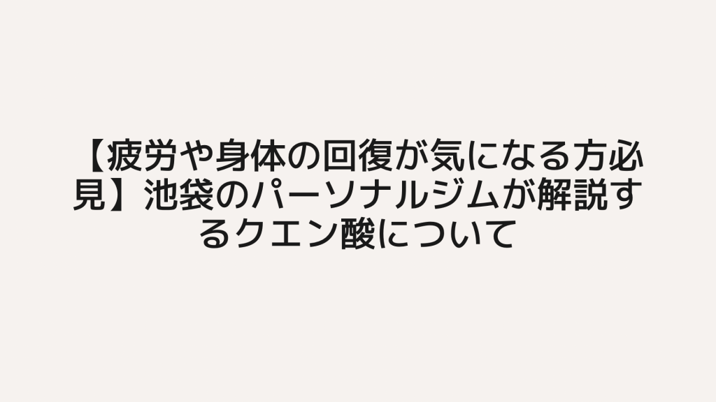 【疲労や身体の回復が気になる方必見】池袋のパーソナルジムが解説するクエン酸について