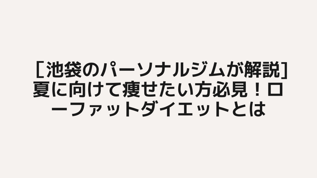 [池袋のパーソナルジムが解説]夏に向けて痩せたい方必見!ローファットダイエットとは