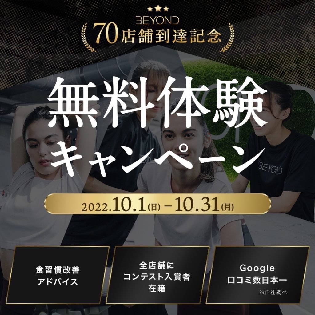 その中でもクチコミ数110件を超えるBEYOND 池袋店が、なんと10月体験トレーニング無料です!
